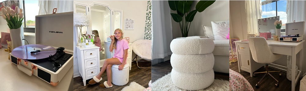 Ella’s room got a dreamy glow-up! ✨ A new vanity and cozy corners make it the perfect tween space. Check out the makeover & shop the look!